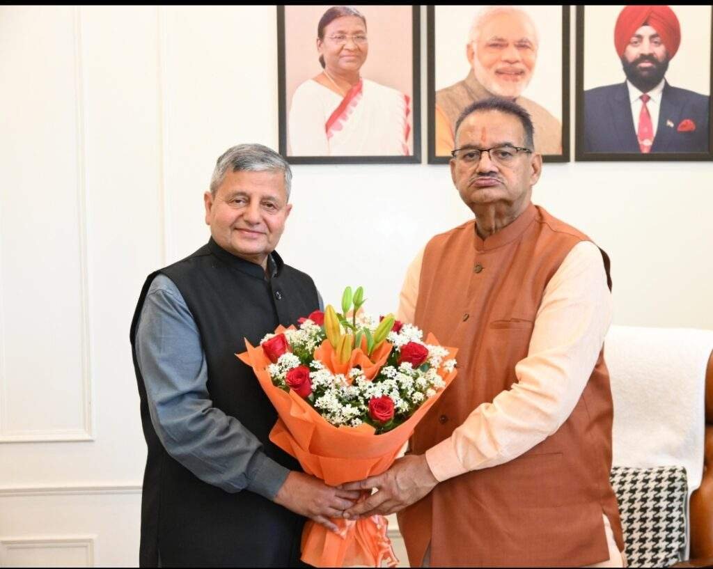 कृषि मंत्री गणेश जोशी से शिष्टाचार भेंट करते भरसार विश्वविद्यालय के कुलपति