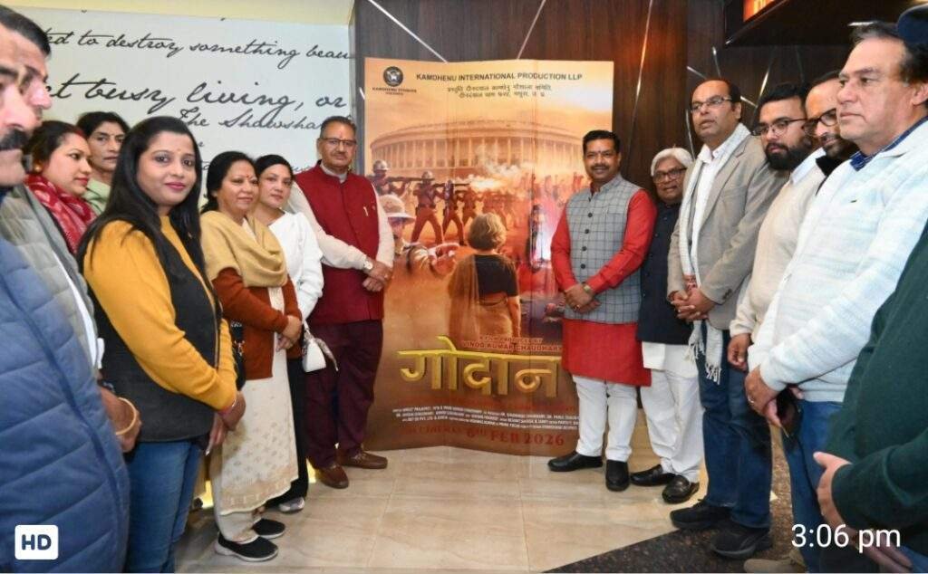 गौ माता पर आधारित प्रेरणादायक फिल्म “गोदान” देखने थियेटर पहुँचे कैबिनेट मंत्री गणेश जोशी