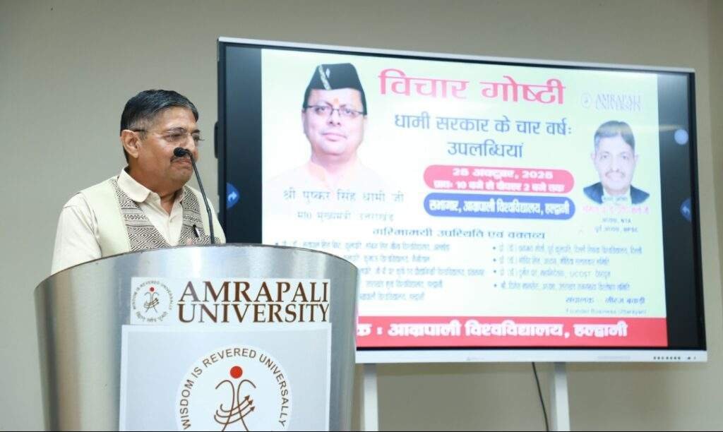 प्रो. (डॉ.) एन. एस. बिष्ट, कुलपति, आम्रपाली विश्वविद्यालय, हल्द्वानी, ने कहा कि धामी सरकार की नीति और नियत स्पष्ट है, और राज्य हर क्षेत्र में नए विकास के आयाम स्थापित कर रहा है।