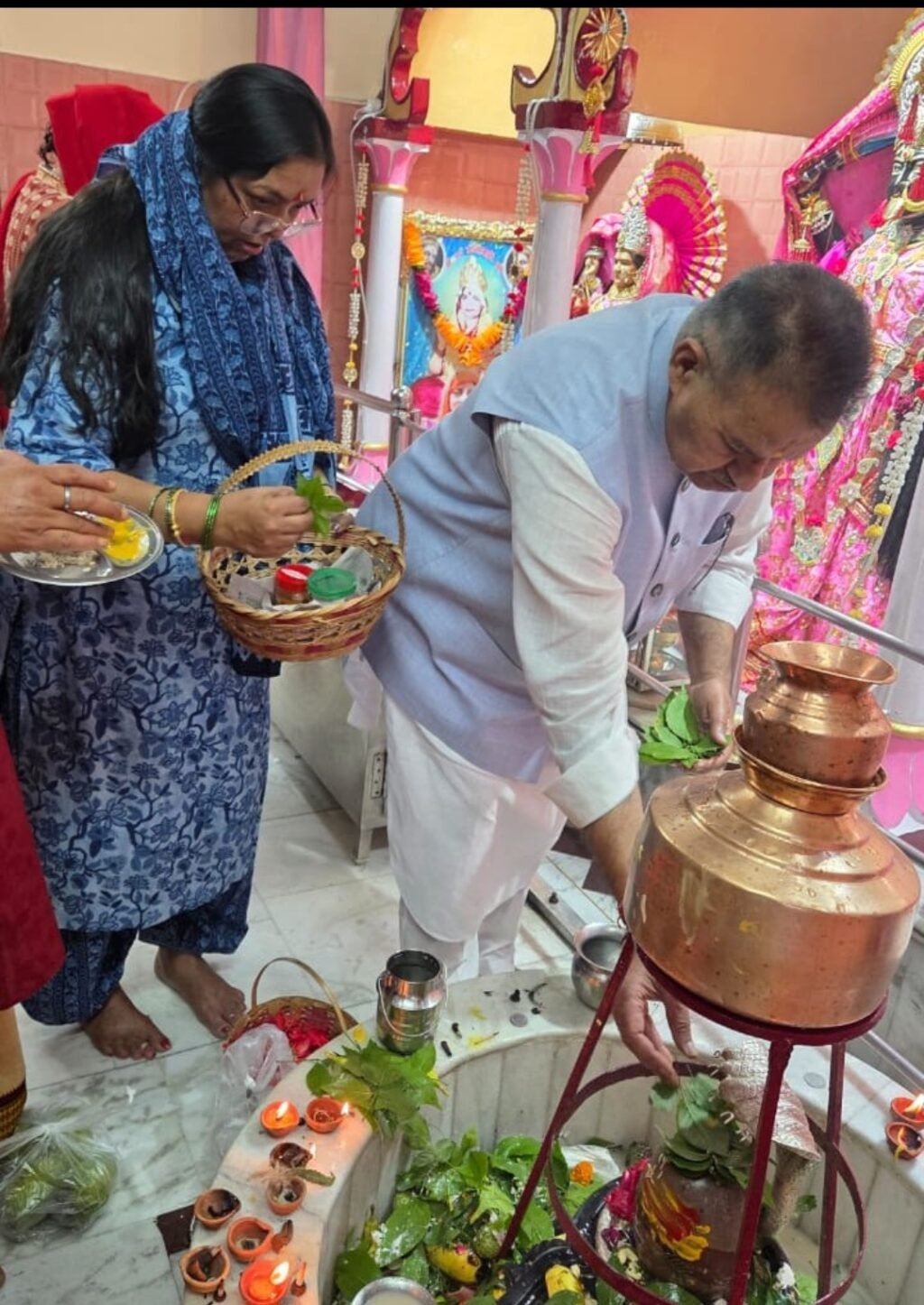 कैबिनेट मंत्री गणेश जोशी ने पवित्र श्रावण मास के सोमवार के पावन अवसर पर न्यू कैंट रोड़ स्थित माता मंदिर में धर्मपत्नी निर्मला जोशी के साथ भगवान शिव का विधिवत जलाभिषेक किया।