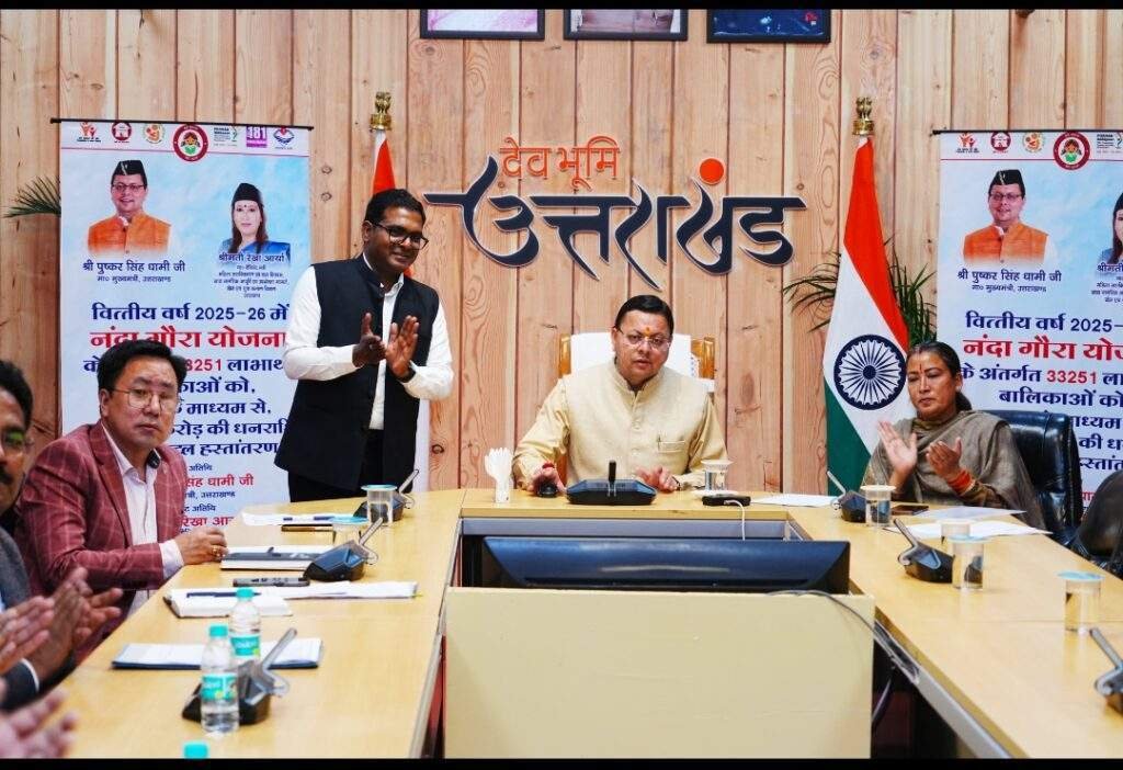 मुख्यमंत्री श्री पुष्कर सिंह धामी ने कहा है कि प्रदेश सरकार बेटियों के जन्म से लेकर उनकी शिक्षा, सुरक्षा और रोजगार को बढ़ावा देने के लिए संकल्पबद्ध होकर कार्य कर रही है। मुख्यमंत्री ने गुरुवार को नंदा गौरा योजना के तहत वित्तीय वर्ष 2025-26 के लिए प्रदेश की 33,251 बालिकाओं के खाते में डीबीटी के माध्यम से 1,45,93.00 (एक अरब पैंतालीस करोड़ तिरान्नबे लाख रुपए) की धनराशि हस्तांतरित की।