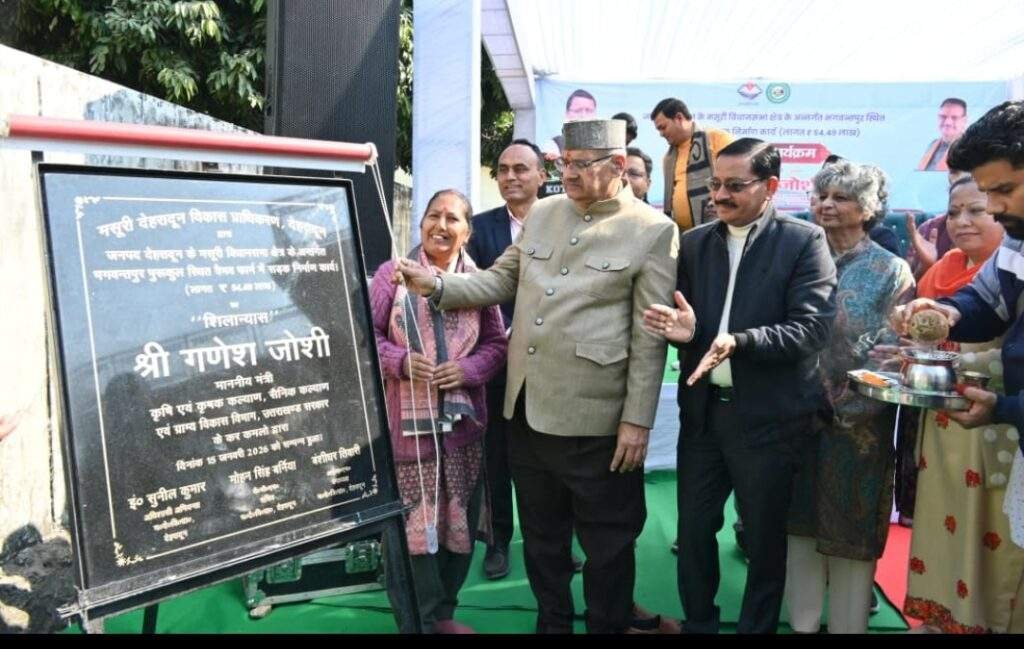 कैबिनेट मंत्री गणेश जोशी ने आज जनपद देहरादून के मसूरी विधानसभा क्षेत्र के अंतर्गत भगवन्तपुर स्थित वैभव फार्म में रुपये 54.49 लाख की लागत से आंतरिक सड़क निर्माण कार्यों का विधिवत शिलान्यास किया।