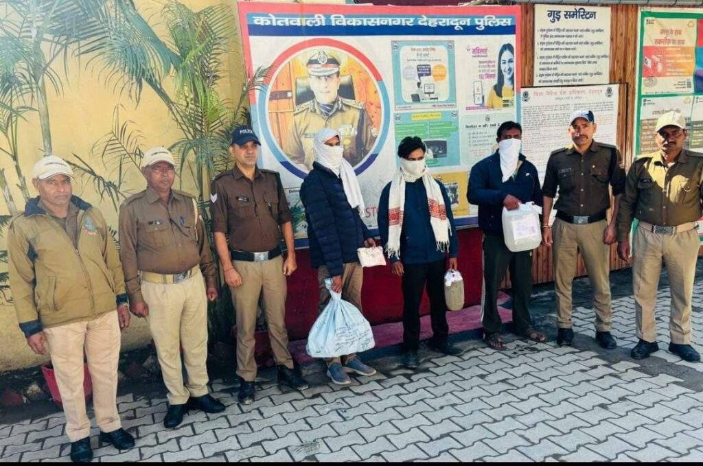 वरिष्ठ पुलिस अधीक्षक देहरादून के निर्देशों पर अवैध शराब की तस्करी में लिप्त अभियुक्तों के विरुद्ध दून पुलिस द्वारा अभियान चलाकर लगातार कार्यवाही की जा रही है। इसी क्रम पुलिस द्वारा कार्यवाही करते हुए अलग अलग थाना क्षेत्रों से 04 अभियुक्तो को अवैध रूप से शराब की तस्करी करते हुए गिरफ्तार किया गया, जिसका विवरण निम्नवत है।