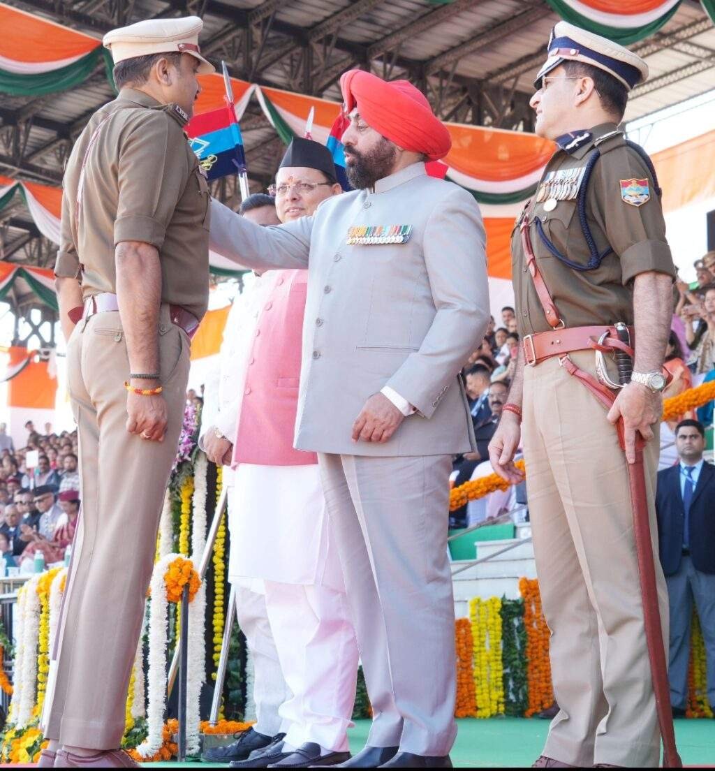 आज दिनांक 07-11-2025 को उत्तराखण्ड राज्य के 25 वे स्थापना दिवस के शुभ अवसर पर रजत जयंती रैतिक परेड के दौरान माननीय राज्यपाल उत्तराखंड लेफ्टिनेंट जनरल गुरमीत सिंह (सेवानिवृत्त) द्वारा वरिष्ठ पुलिस अधीक्षक देहरादून अजय सिंह (IPS) को महामहिम राष्ट्रपति के सराहनीय सेवा पदक से अलंकृत किया गया।