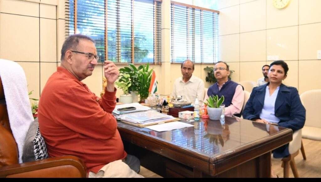 सैनिक कल्याण विभाग के अधिकारियों के साथ विभागीय समीक्षा करते सैनिक कल्याण मंत्री गणेश जोशी