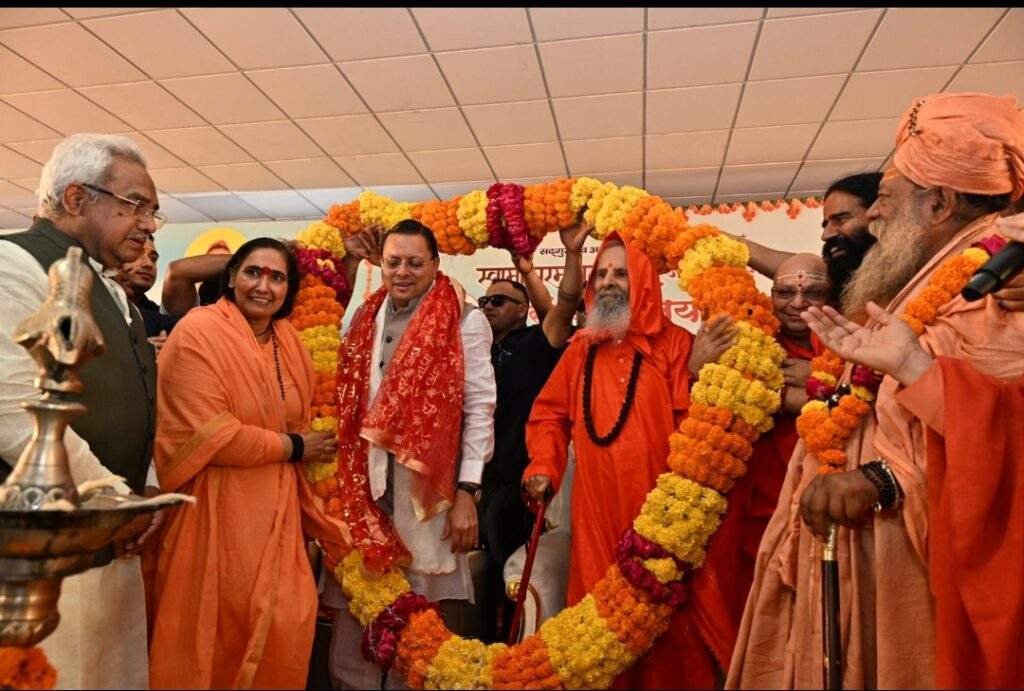 मुख्यमंत्री ने कहा कि राज्य सरकार उत्तराखण्ड को विश्व की आध्यात्मिक राजधानी के रूप में स्थापित करने के लिए प्रतिबद्ध है। इस दिशा में केदारखंड एवं मानसखंड मंदिर क्षेत्रों के विकास, हरिद्वार-ऋषिकेश कॉरिडोर, शारदा कॉरिडोर तथा यमुनातीर्थ स्थल के पुनरुद्धार जैसे महत्वपूर्ण कार्य किए जा रहे हैं। साथ ही दून विश्वविद्यालय में ‘सेंटर फॉर हिन्दू स्टडीज’ की स्थापना भी की गई है। उन्होंने राज्य सरकार द्वारा समान नागरिक संहिता लागू करने, धर्मांतरण विरोधी कानून, तथा अवैध अतिक्रमण के विरुद्ध की गई कार्रवाइयों का उल्लेख करते हुए कहा कि सरकार प्रदेश की सांस्कृतिक विरासत एवं जनसंख्या संतुलन को सुरक्षित रखने के लिए संकल्पबद्ध है।