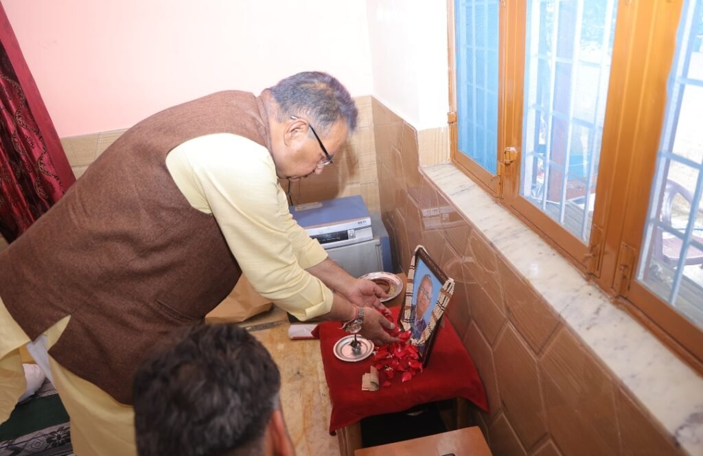14वीं बटालियन गढ़वाल राइफल्स के रिटायर्ड कैप्टन धनी राम नैनवाल के निधन पर उनके निजी आवास पर शोक संवेदना व्यक्त करते सैनिक कल्याण मंत्री गणेश जोशी।