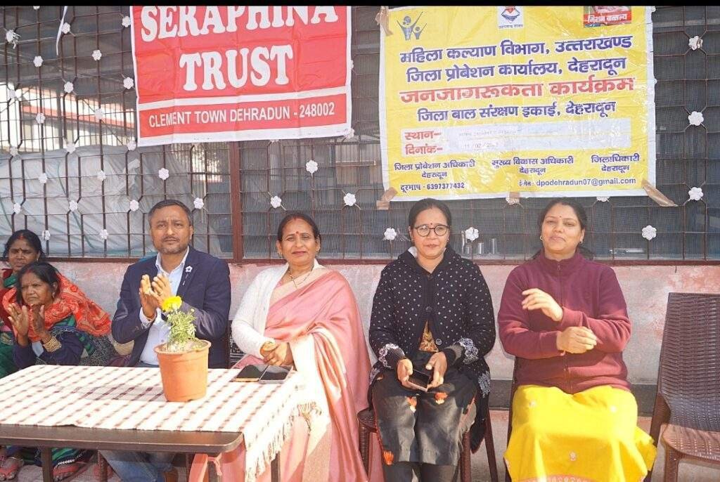 जिलाधिकारी सविन बंसल के निर्देशन में बुधवार को जिला बाल संरक्षण इकाई देहरादून/जिला प्रोबेशन कार्यालय देहरादून, महिला कल्याण विभाग, उत्तराखण्ड द्वारा आश्रय गृह सरफिना ट्रस्ट, क्लेमेंट टाउन, देहरादून के परिसर में जागरूकता शिविर आयोजित किया गया। इस शिविर का उद्देश्य लोहिया नगर, ओगल भट्टा, प्रेम नगर, कावली रोड, पटेल नगर, चंदन नगर और मोहब्बेवाला बस्तियों में निवासरत महिलाओं को विभिन्न सामाजिक एवं कानूनी विषयों के प्रति जागरूक करना था।